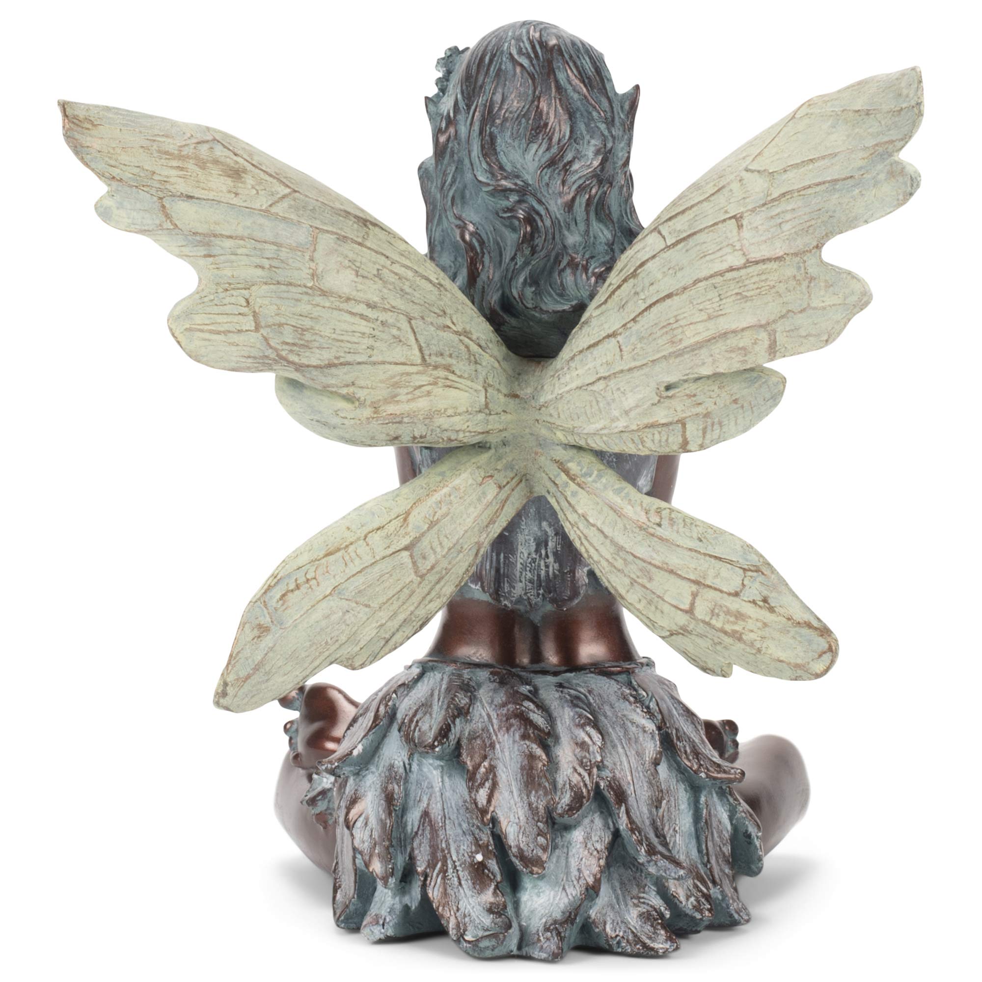 Napco 12 x 10.5 Inch Resin Constructed Meditation Fairy Decorative Indoor or Outdoor Garden Statue, Weathered Bronze and Stone