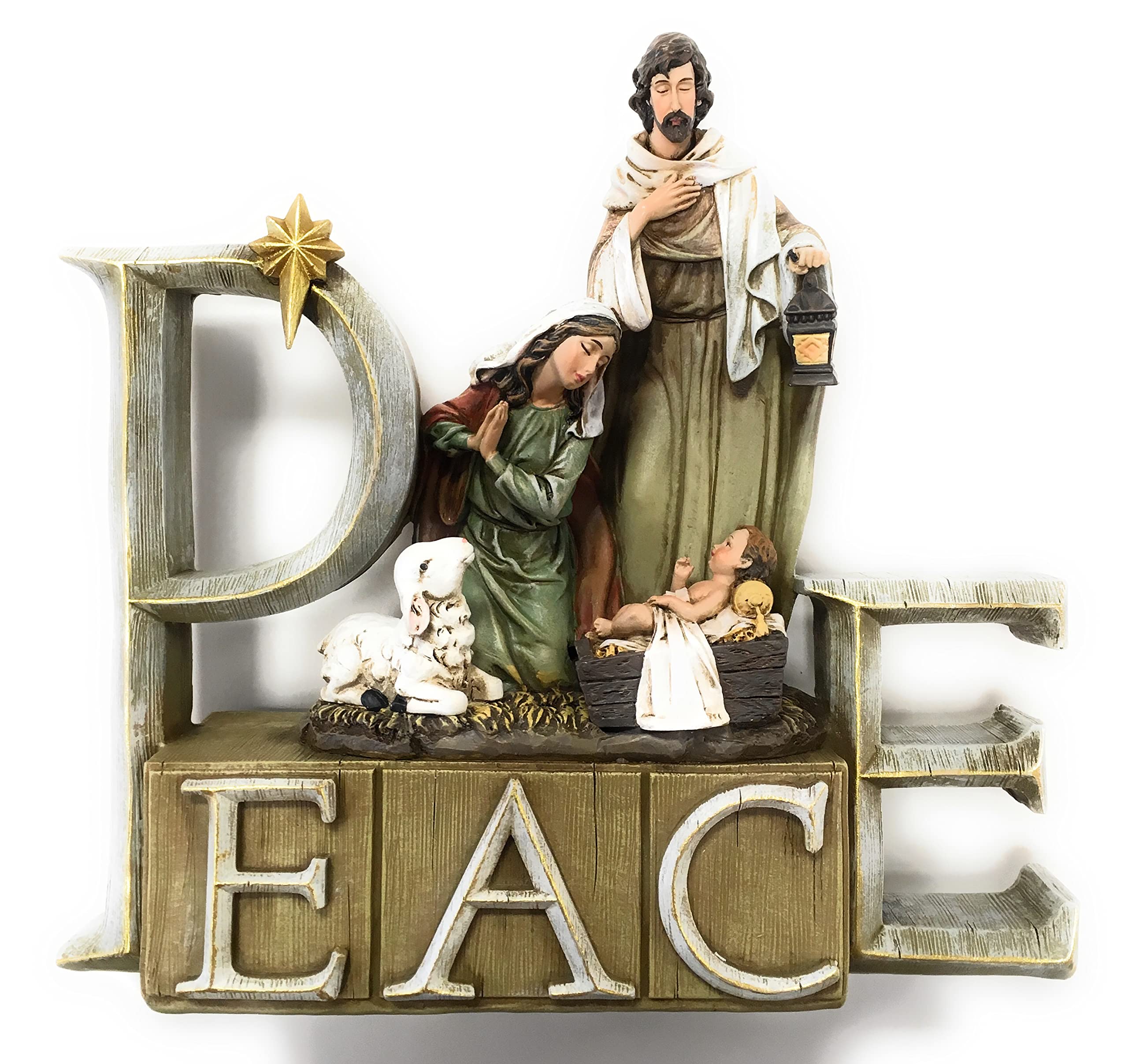 Peace Holy Family Nativity 9 x 8 Inch Resin Tabletop Nativity Scene Figurine