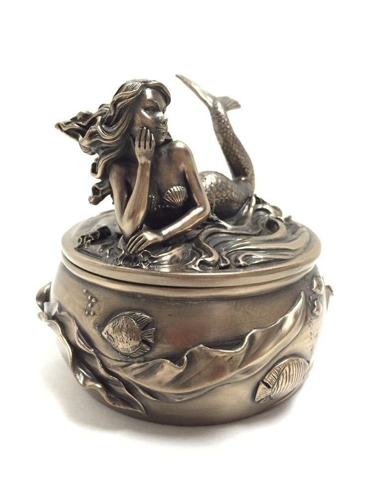 SUMMIT COLLECTION Art Nouveau Antique Bronze Mermaid Calypso Embellished Trinket and Jewelry Box